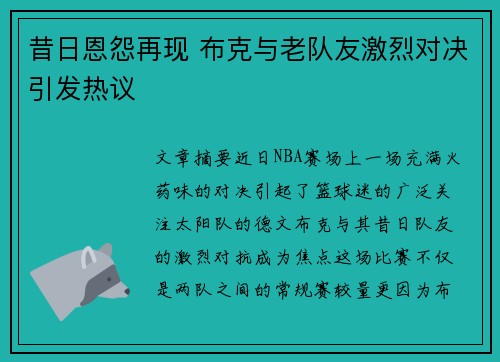 在一场激动人心的篮球比赛中,超级对决成为了全场的焦点,而杰森·塔图姆的精彩表现无疑是此次对决的最大亮点。这场比赛不仅吸引了无数球迷的目光,也成为了篮球赛事中一个重要的标杆,塔图姆的出色表现和与对手的激烈碰撞,引发了全场的激情。通过三大方面的分析,我们可以清晰地看到这场超级对决的独特魅力与震撼效果。这不仅仅是一场普通的比赛,更是一场展现篮球技术、个人实力和团队协作的盛宴。本文将从塔图姆个人实力、比赛...